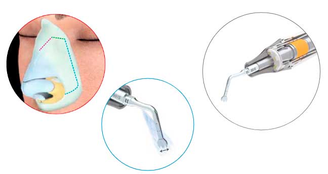 - Control y Precisión: La tecnología ultrasónica permite efectuar cortes más precisos en comparación con la técnica tradicional, lo que puede resultar en resultados más refinados. La reconstrucción ósea de la nariz se vuelve muy precisa.
